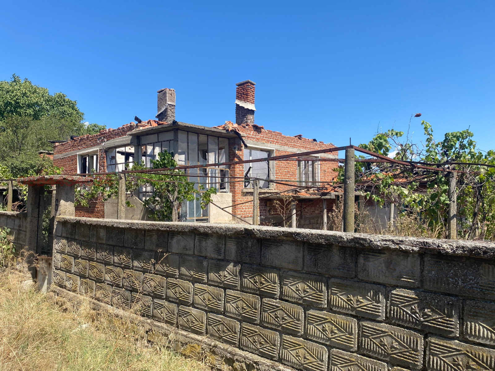 Къщата е претърпяла пожар и се нуждае от основен ремонт, но основите и носещите стени са здрави, което дава възможност за възстановяване и преустройство според нуждите на бъдещия собственик.