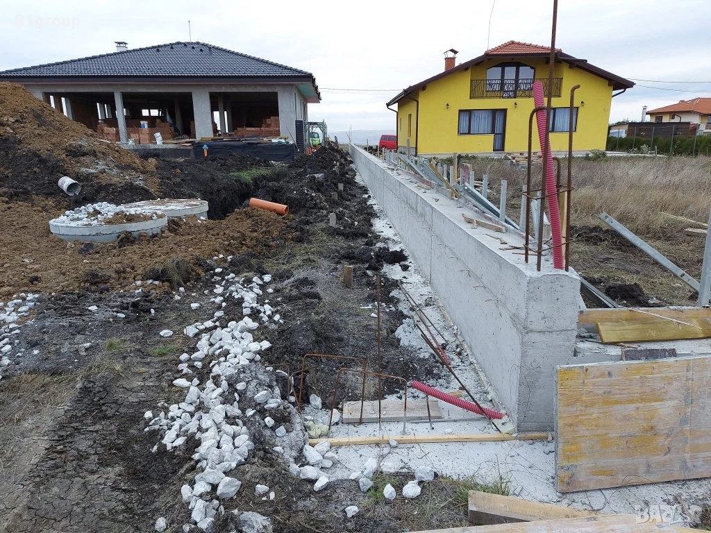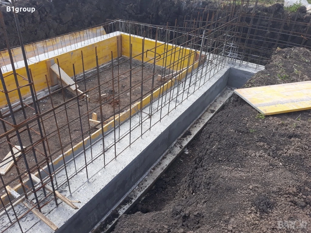 Извършваме изграждане на бетонни фундаменти, кофраж, армировка и груб строеж на къщи и сгради. Работим по проект или по задание на клиента – от подготовката на терена до завършване на конструкцията.