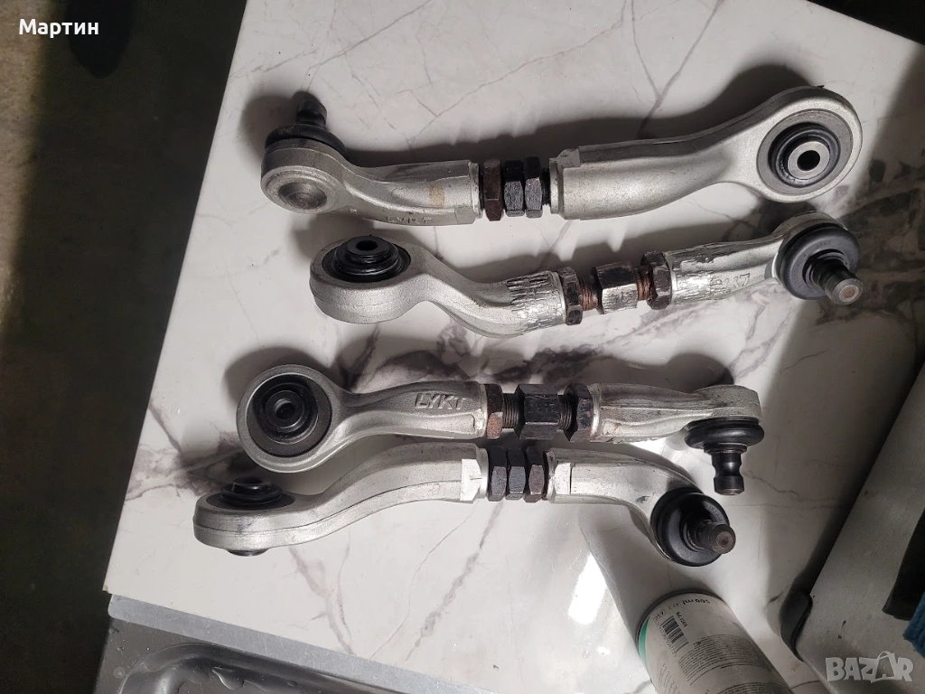 Продавам комплект горни рeгулируеми носачи LYKT за B5,B6,B7 A6 C5. Единия някой "майстор" го е магерил(вижда се на снимката), но се върти свободно в момента. И един има нужда от рециклиране на шарнира. Отвътре са с унибал, а не с тампон.