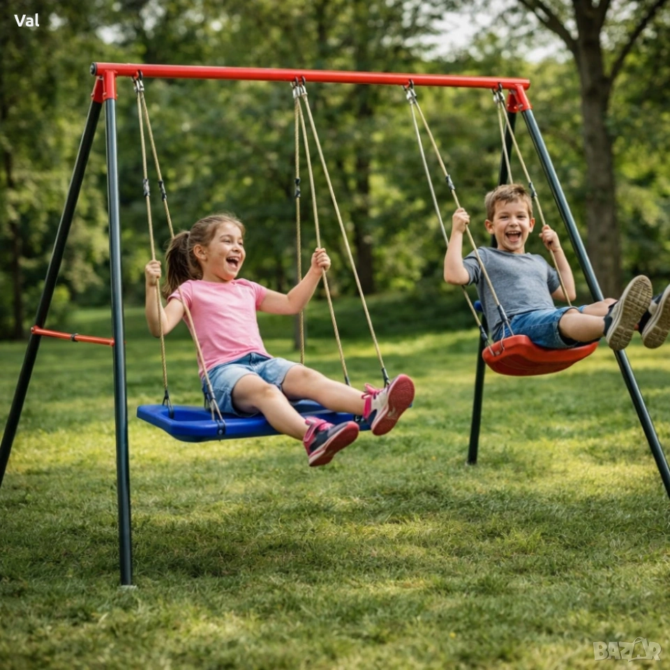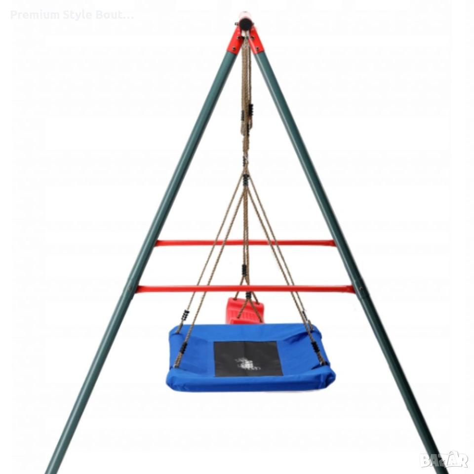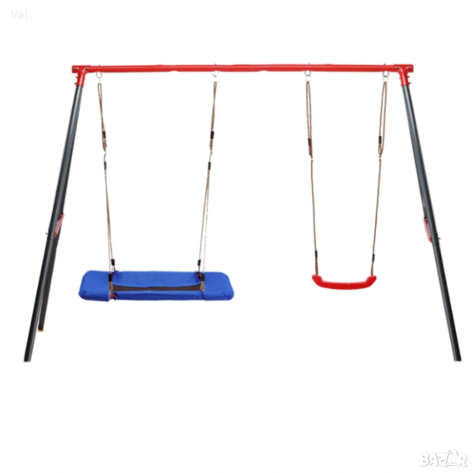 Технически характеристики на Двойна градинска люлка - класическа и щъркелово гнездо - гарантиран релакс и забавление Подробни технически данни и спецификации, които гарантират качество и безопасност: Общи размери: 290 × 180 × 200 см (дължина × ширина × височина) Височина: 200 см; Ширина: 180 см; Дължина: 290 см Диаметър на щъркеловото гнездо: приблизително 100 см Рамка: прахово боядисан метал Диаметри на тръбите: 50 мм (2 мм), 45 мм (1 мм), 25 мм (1 мм) Максимално натоварване: 50 кг на потребител, общо 100 кг Цветове на седалките: червено и синьо, устойчиви на избледняване Подходящо за: деца над 3 години, двама едновременни потребители доставка с Еконт с опция преглед до 3 работни дни.