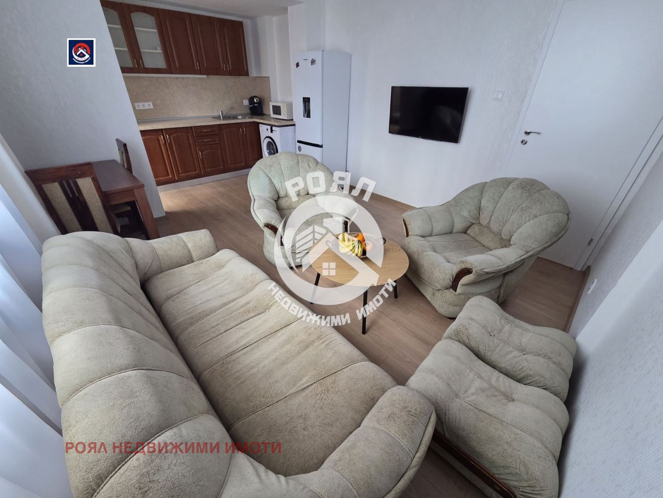 Състои се от дневна с кухненски бокс, две самостоятелни спални, баня с тоалетна и тераса. Имотът е напълно обзаведен и оборудван с всички необходими електроуреди климатик, пералня, хладилник, фурна и телевизор.