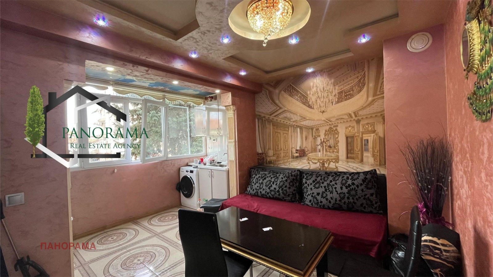 Едностаен апартамент находящ се на първи жилищен етаж, 38кв.м., разпределен - антре, хол, кухня, баня и тоалетна, + 6 кв.м. мазе. Жилището е санирано, сменена дограма, сменена подова настилка, напълно обзаведен в много добро състояние. На централно място, в близост, детска градина, училище, магазини, автобусна спирка, детски площадки.