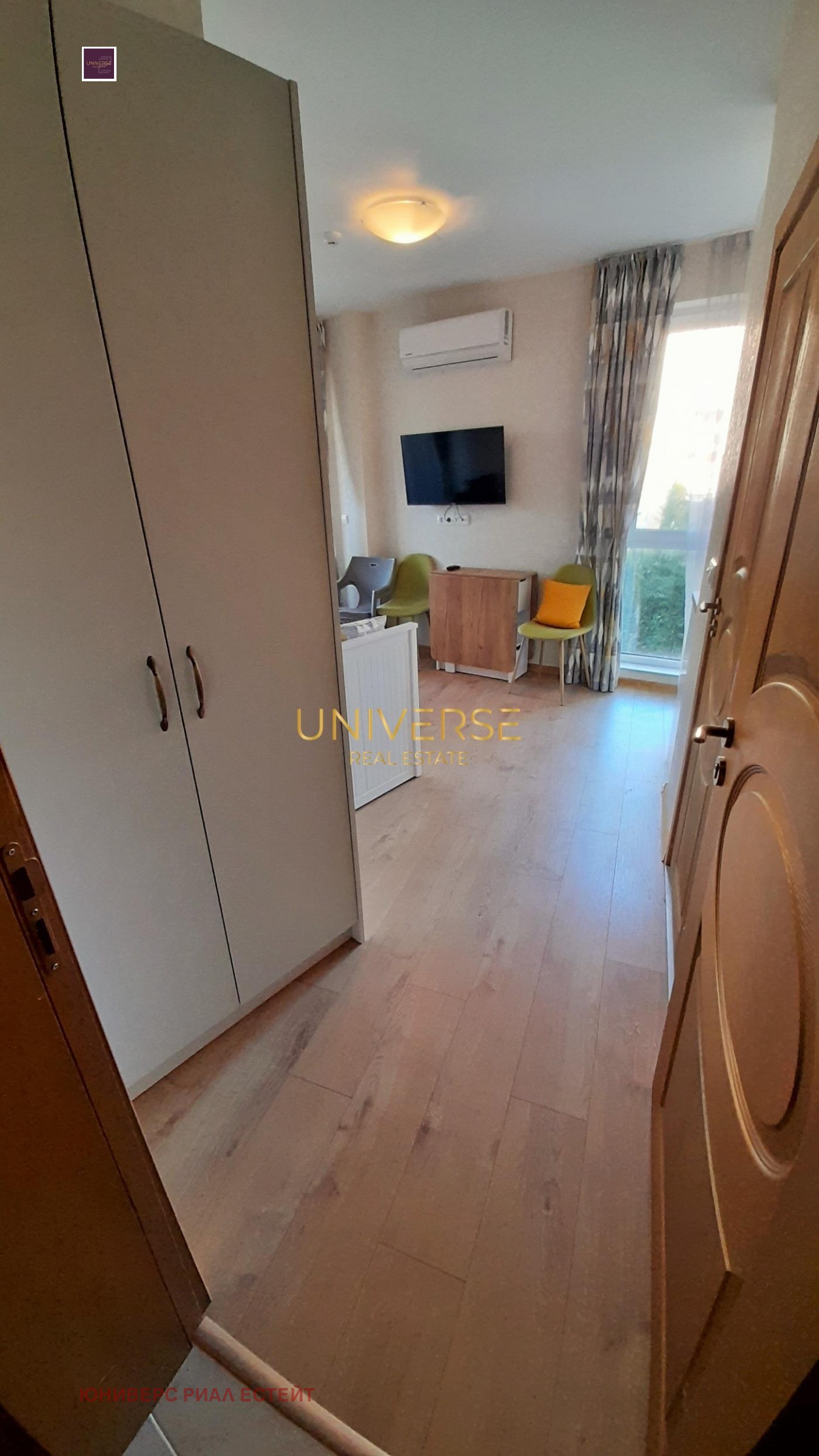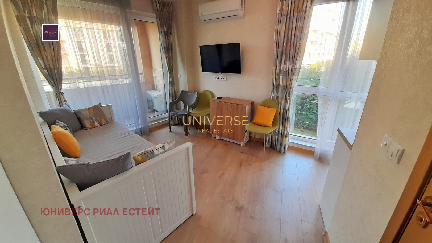 Предлага се студио апартамент в новозавършен, луксозен комплекс със собствен частен парк в Слънчев бряг. Апартаментът разполага с всички модерни уреди и мебели. Комплексът е тих и зелен. Развитата паркова зона (приблизително 7 хектара) включва детски площадки, зони за отдих, фитнес на открито, спортни игрища и тихи, без трафик улици. За удобство на живущите са на разположение басейн с детска зона, детска площадка, ресторант и видеонаблюдение. Всички удобства, включително магазини и аптеки, са наблизо и всичко е отворено целогодишно. Акт 16.#5639