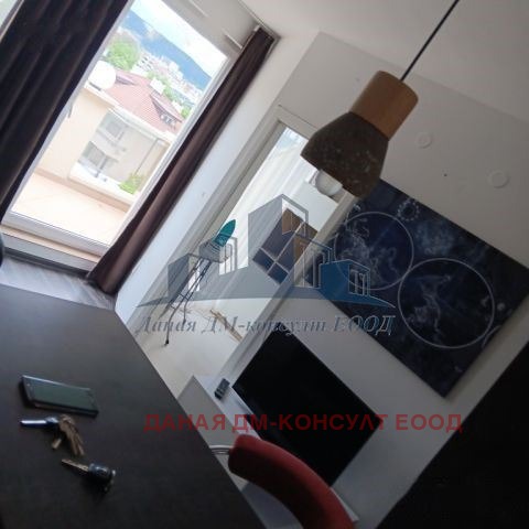Двустаен уютен апартамент с площ от 60кв.м, ново строителство в идеален център. Апартаментът се намира на 4 жилищен етаж с асансьор, входът е с контролиран достъп. Разпределението е както следва: Входно антре, Всекидневна с кухня, Спалня и баня с тоалетна в едно помещение. Жилището е обзаведено напълно с всички необходими мебели и електроуреди: два климатика, телевизор, хладилник, фурна, печка и пералня. Апартаментът разполага с голяма баня и тоалетна в едно помещение. Апартаментът има разкошна открита тераса с изглед към града. Жилището се отдава дългосрочно на съвестни наематели и не се допускат домашни любимци.