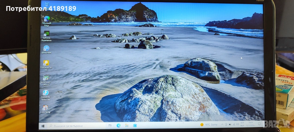 лаптопа работи тихо всичко му е изправно за параметрите с който ,разполага бързо работи ,батерията е в отлично състояние ,има външни забележки.