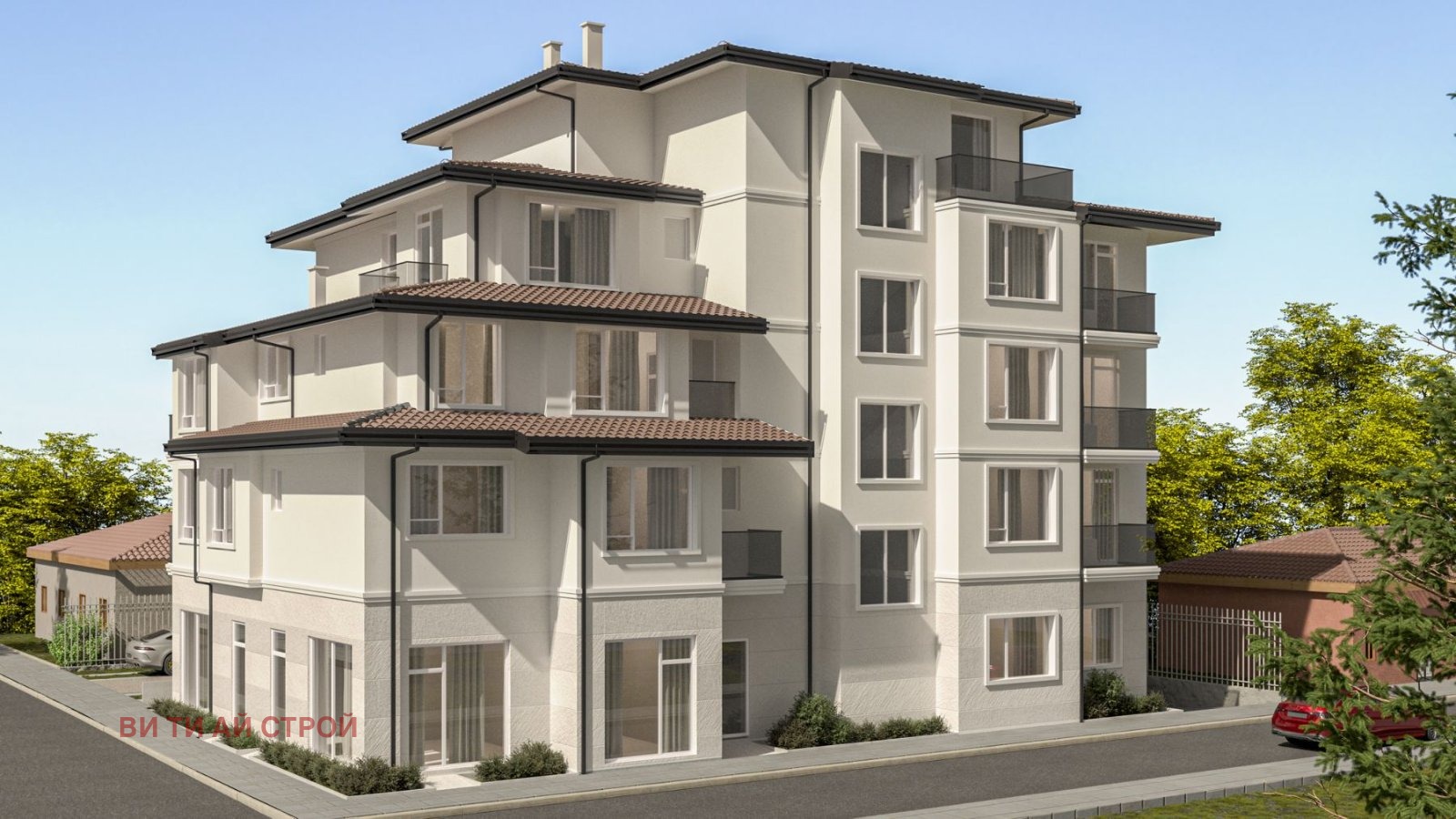Представяме Ви апартаменти от 27кв.м до 99.30 кв.м.Търговски обекти , някой от които със статут на лекарски кабинети с площи от 22 кв.м до 29 кв.м . Степента на завършеност на имота е - поставена немска шесткамерна дограма със стъклопакет ' Four seasons ' , двоен механизъм на отваряемите части ; под-замазка, стени-шпакловка , ВиК на тапа , Ел. инсталация , прокарана според проекта на сградата , поставена външнаблиндирана врата с каменна вата, десетсантиметрова външна изолация . При допълнително заплащане предлагаме извършване на довършителни работи.Възможност за допълнително закупуване на самостоятелни гаражи и паркоместа