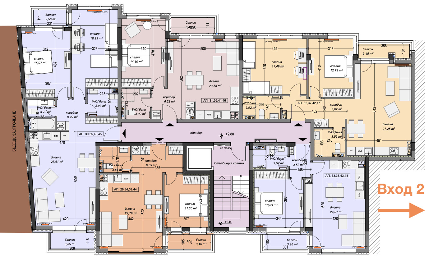 Апартаментите са с различни изложения, разположения и квадратури, големи или малки тераси!