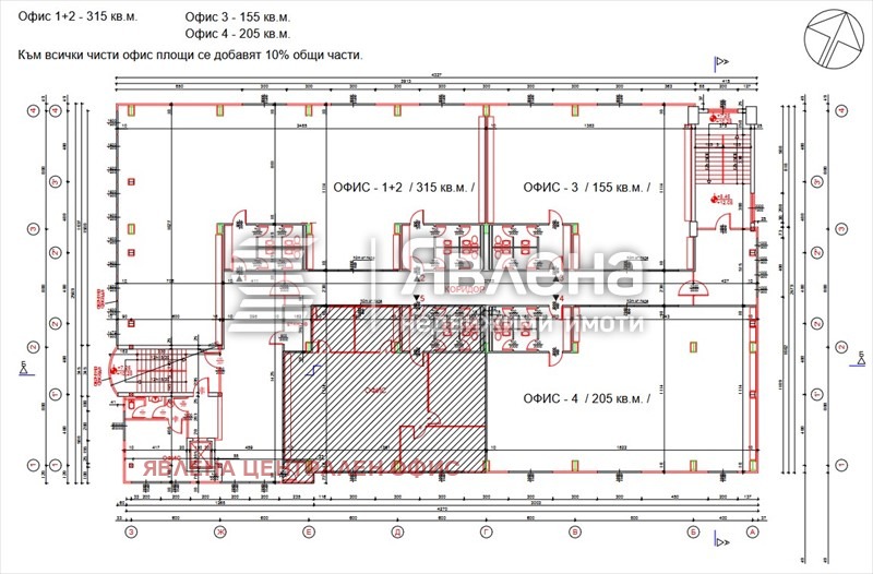 Агенция 'Явлена' отдава под наем офис площи с обща квадратура 675 кв.м., разпределени в три пространства със следните квадратури: Офис 1 +2 -315 кв.; Офис 3-155 кв.м. и Офис4-205 кв.м. в бизнес сграда на ключов булевард (метростнация 12 минути), в района на Аерогара София. Предложените офис площи са на етаж.2 Офис площите могат да бъдат наети както самостоятелно , така и обединени. Всеки офис разполага със санитарен възел, обособено място'Храна' и възможност за оформяне на работно пространство. Има високи стъклени витрини. Сградата предлага охраняем паркинг, заведение за хранене, контрол на достъпа, видеонаблюдение, високоскоростен интернет, управление на общи части.