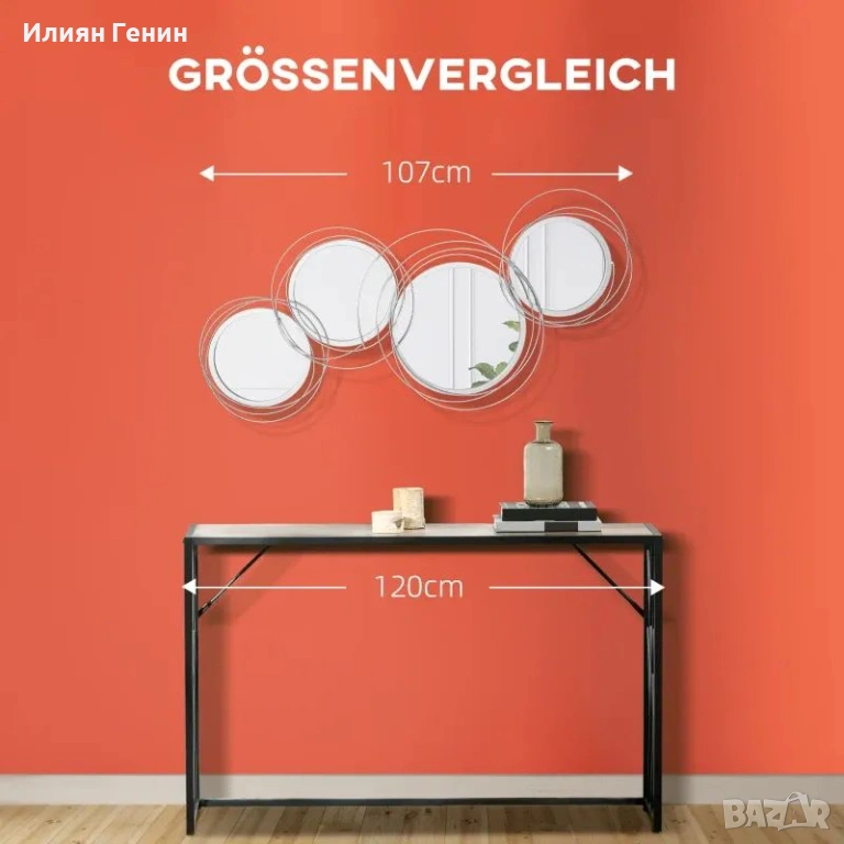 Комплект огледала HOMCOM за стенна декорация, стенен декор с 4 кръгли огледала, стенно огледало, огледало за коридор, 107 x 4 x 56 см - 80.00 €.