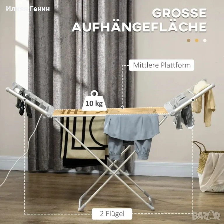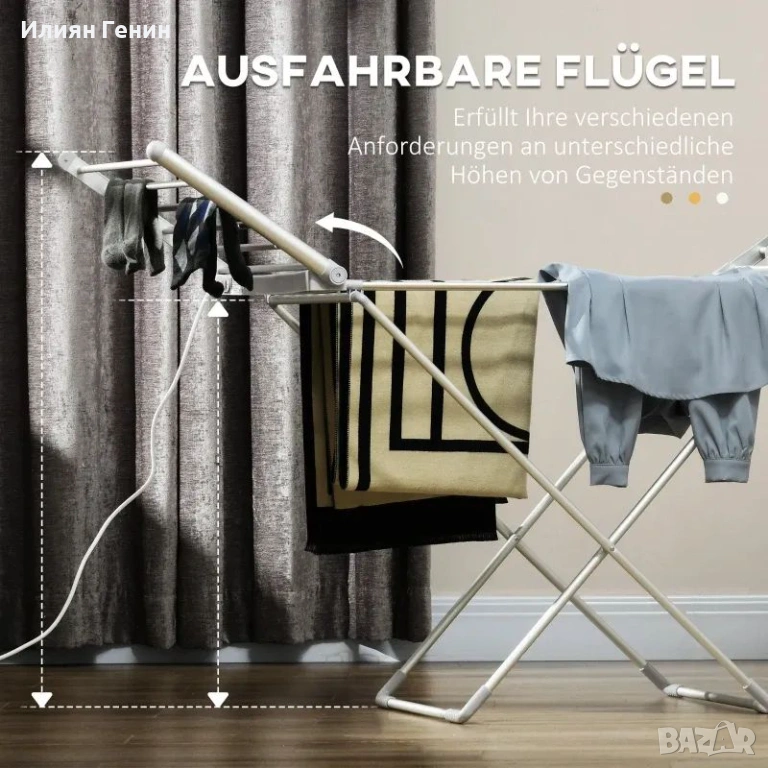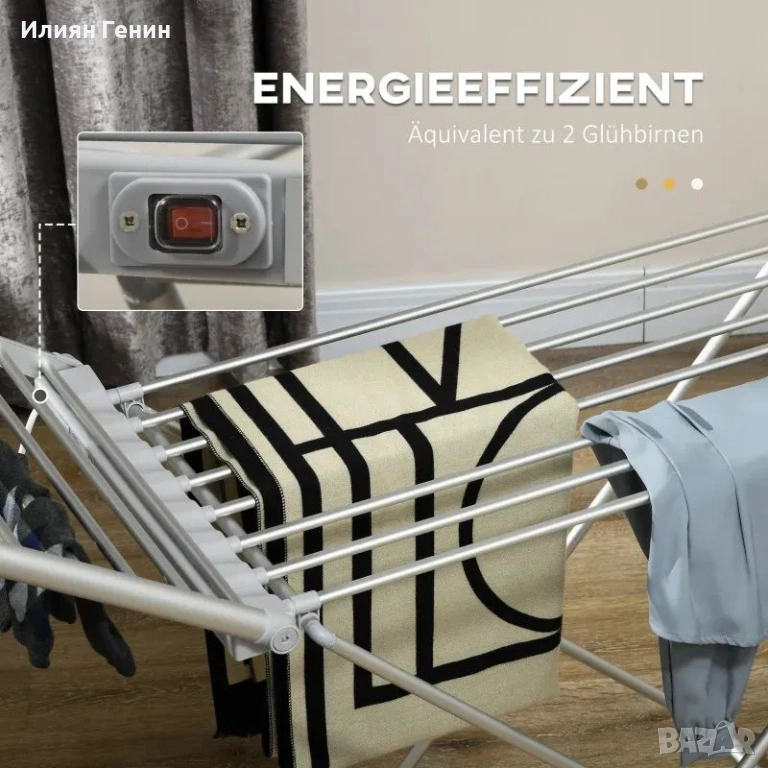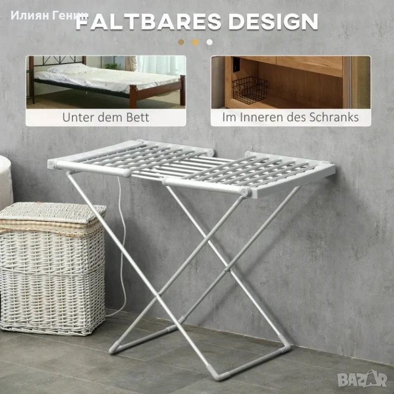 Спестяване на място: Благодарение на сгъваемия и компактен дизайн, сушилникът за дрехи може лесно да се интегрира във всяка стая, независимо дали е в пералното помещение, банята или спалнята.
