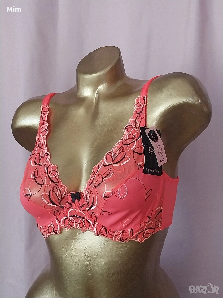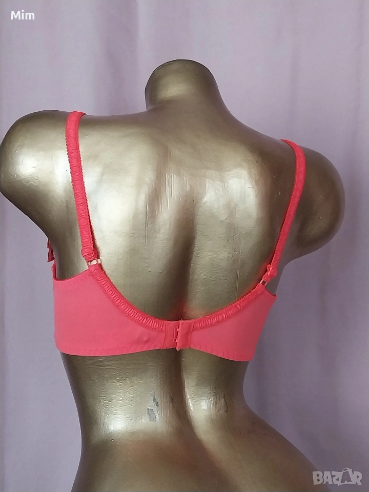 Чашката е мека с бродерия, с банели регулируеми презрамки двуредно закопчаване, подгръдна до 90 см еластичност. Нов с хартиен носител.