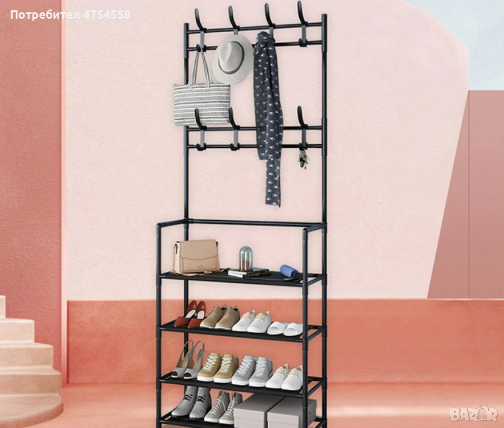 Многофункционална стойка за обувки, чанти и закачалка за връхни дрехи и др.