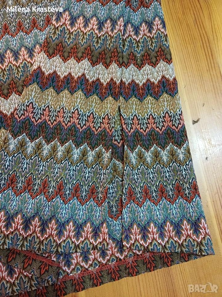 Наситена на цветове. Пада много доб.е видимо е от снимката. Има малки ципки на ръкавите е в двата края. На врата има подсилваща лента против разтягане.