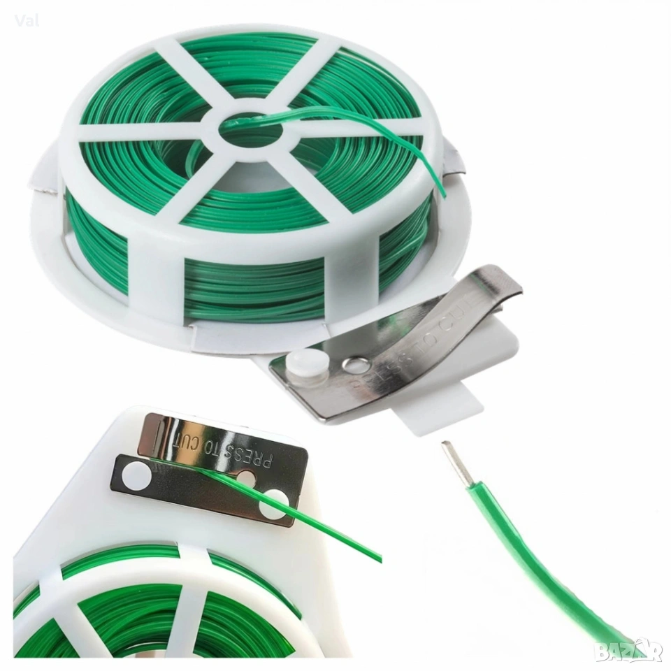 Дължина: 20 метра Диаметър: Ø 1.8 мм Цвят: зелен (камуфлаж за растения) Материал: метален проводник с омекотено пластмасово покритие Приложение: връзване на увивни, декоративни растения, поддържане на зеленчуци и оранжерийни култури Устойчивост: подходяща за външна и вътрешна употреба, устойчива на влага и температурни промени