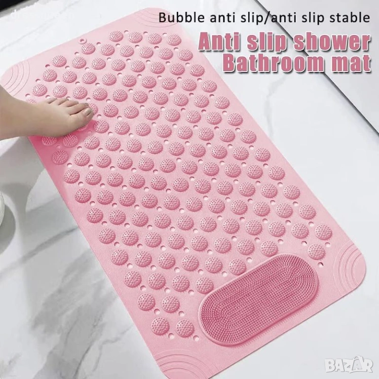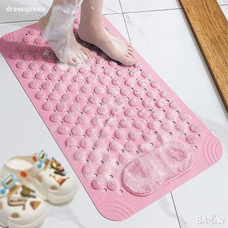 Превърнете рутинния си душ в спа преживяване с нашата постелка с масажор за крака. Тази масажна постелка за баня е проектирана с повърхност от меки шипове, които нежно масажират стъпалата Ви. Освен функцията на масажор за крака, тя служи и като изключително ефективна противохлъзгаща постелка за баня.
