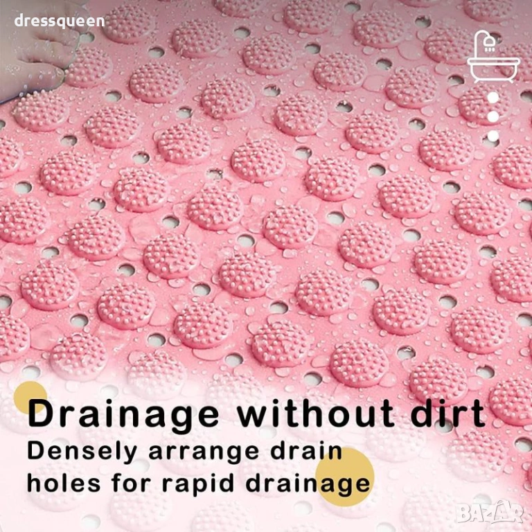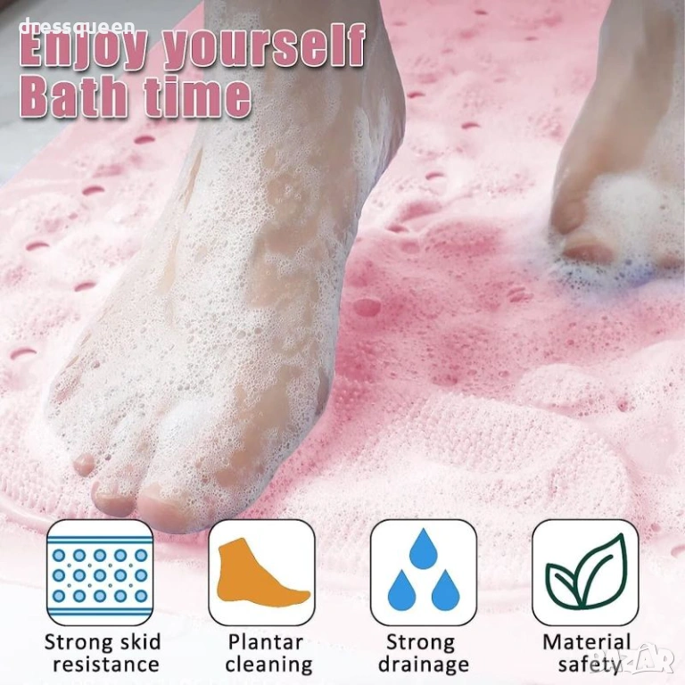 Стабилно Закрепване: Снабдена е с множество вендузи, които гарантират, че гумираната постелка за душ остава неподвижна.