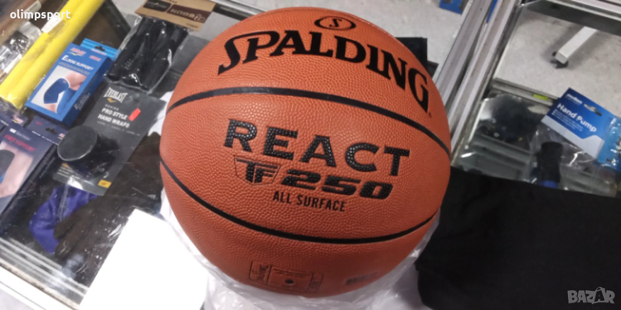 Баскетболна топка Spalding TF-250 React Logo FIBA позволява игра както на закрито, така и на открито → Обява 53821569