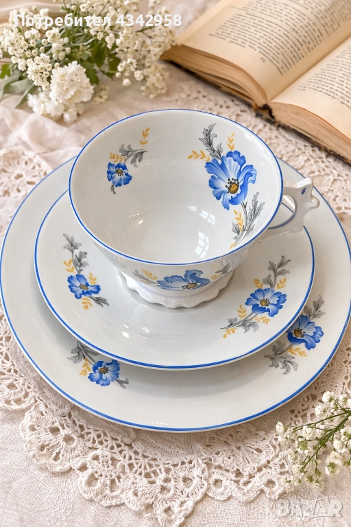 Комплектът включва:• чаена чаша• чинийка• десертна чиния
