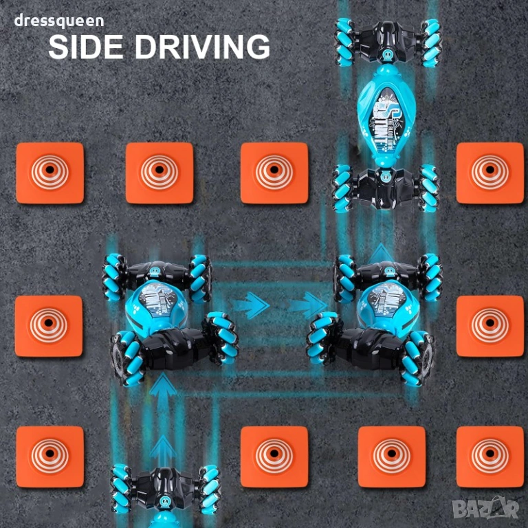Със своето задвижване на четирите колела (4WD), количката изпълнява впечатляващи трикове като 360° въртене, дрифт и странично движение.