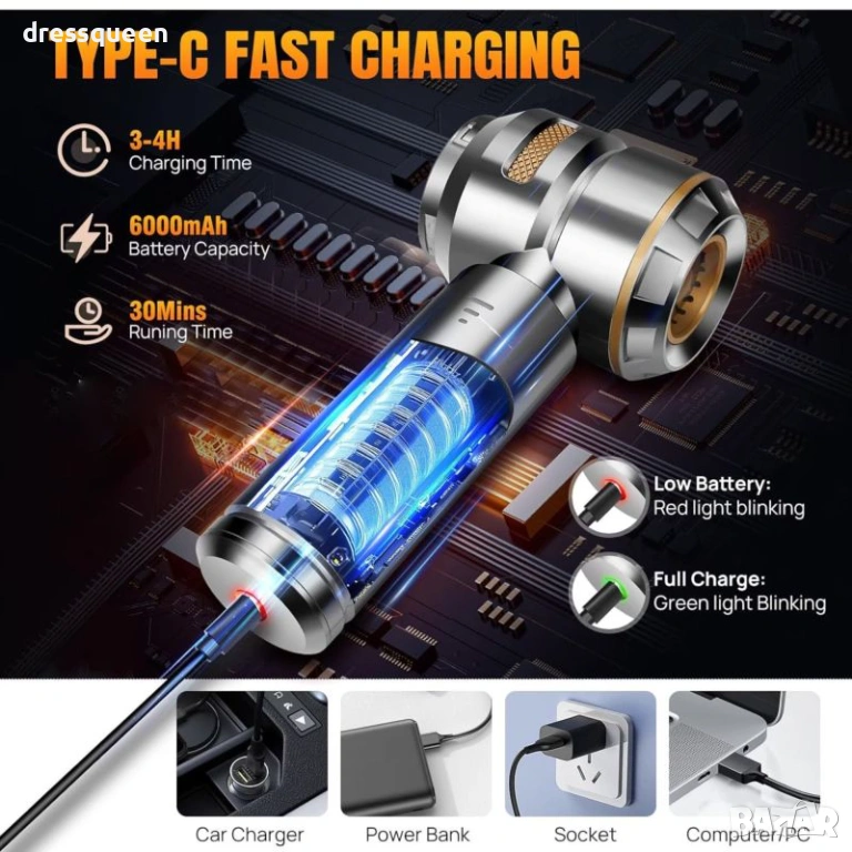 Акумулаторна Свобода: Кажете сбогом на кабелите. Просто заредете ръчната акумулаторна прахосмукачка и се насладете на часове почистване.