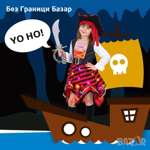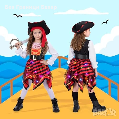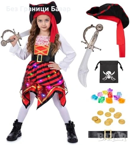 Нов Детски пиратски костюм за момиче със светеща рокля и шапка 5/6 години
