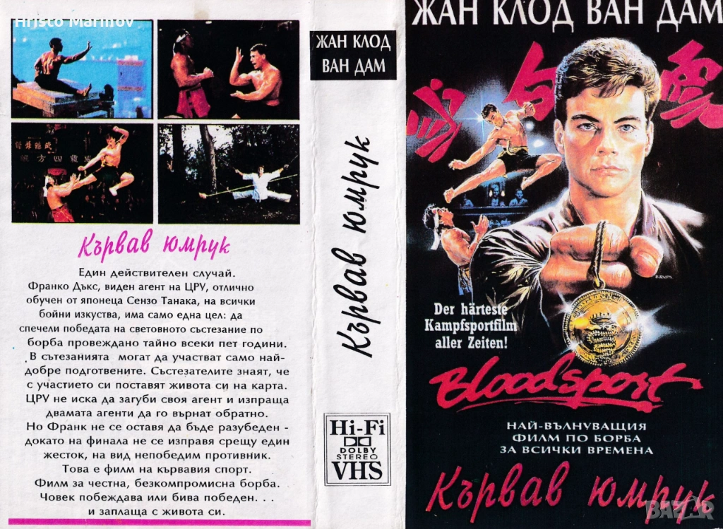 Продавам видео касета Кървав Спорт с бг дублаж Едногласов в добро състояние цената е 20евро, пращам по Еконт с преглед,