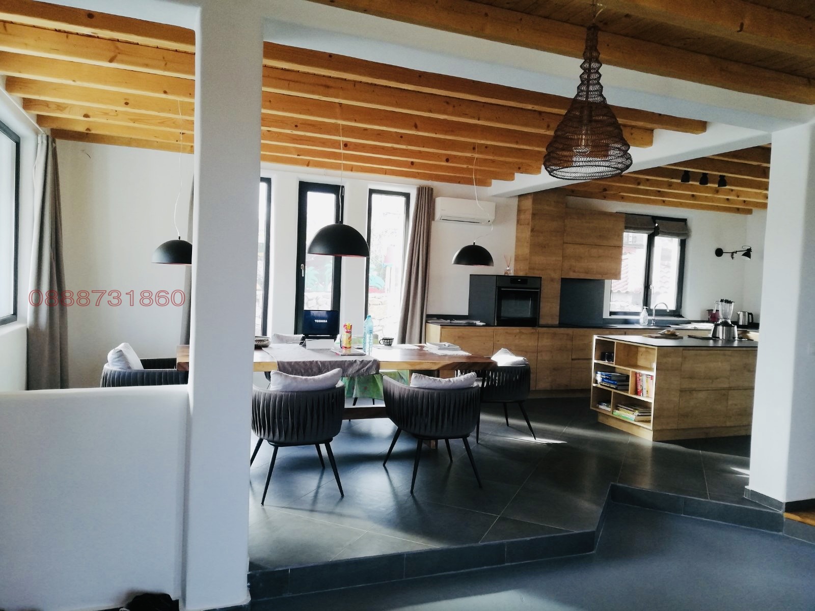 Къща: Луксозно обзаведени и просторни помещения с модерни удобства и архитектурни решения, които осигуряват максимален комфорт и стил. Имотът разполага с хол с кухня и трапезария , 4 спални ,4 бани с тоалетни,килер, склад, разположени както следва :