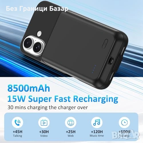 Нов Калъф батерия 8500mAh за iPhone 17 6.3 с LED индикатор кейс Айфон