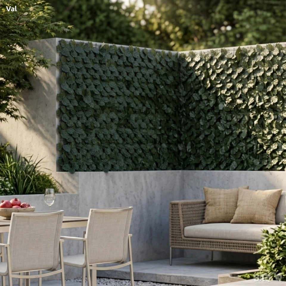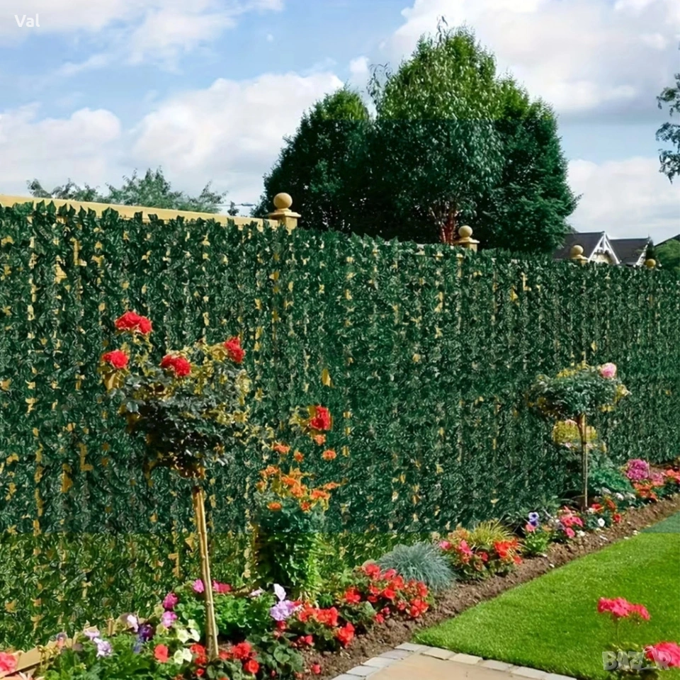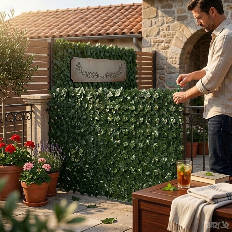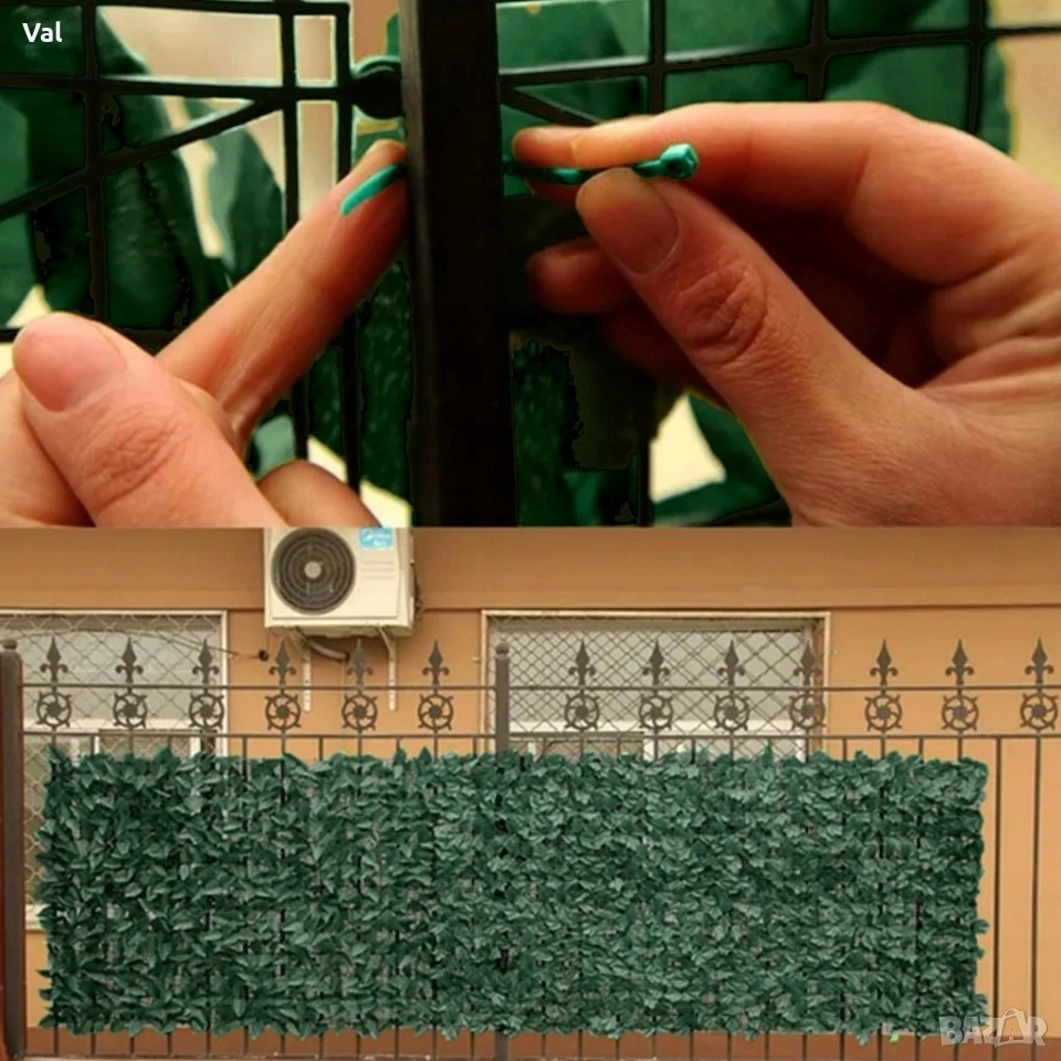 Размери: 1 м × 3 м Цвят: зелен Материал: пластмаса с UV защита Комбинираме: да — може лесно да се съединява с допълнителни панели Приложение: балкон, тераса, градина, офис, витрини, огради, стени Функция: уединение, декорация, сянка Монтаж: кабелни връзки, тел, скоби — бързо и интуитивно