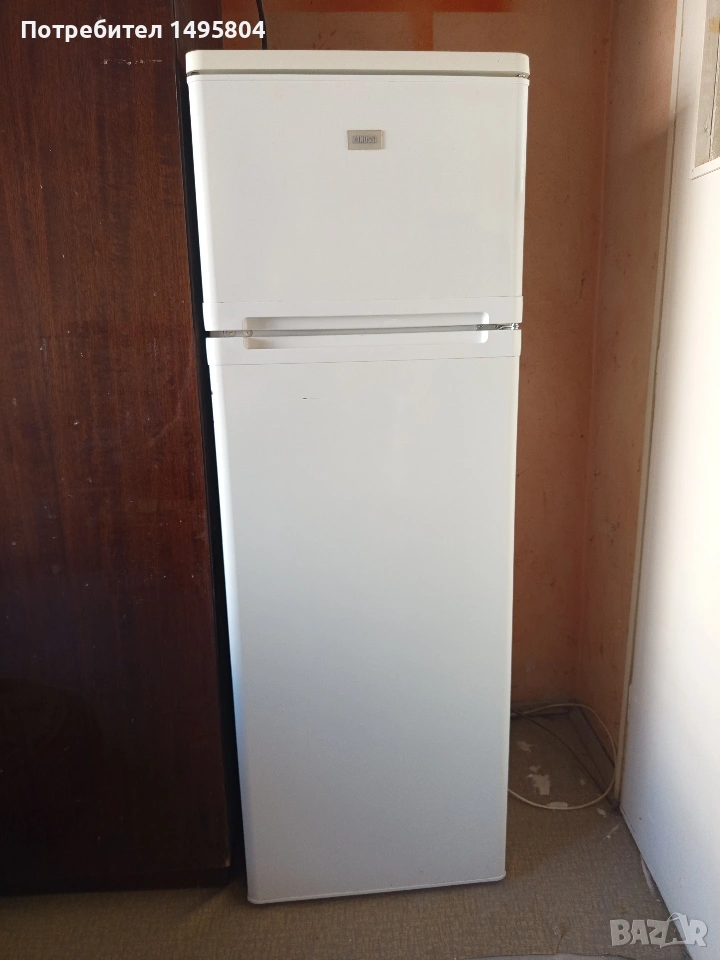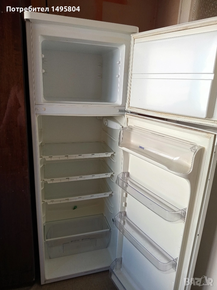 Работещ хладилник с горна камера.