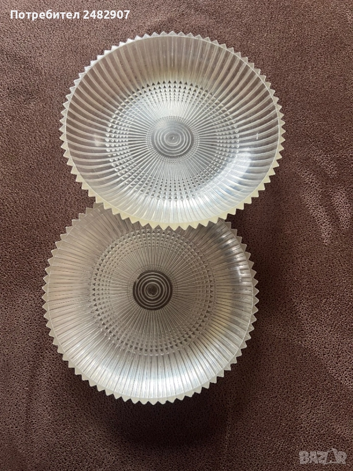 Комплект от 2 броя ретро релефни олекотени чинии от перциглас. Диаметър - 16 см. Много запазени, почти не са използвани, цената е за комплекта.