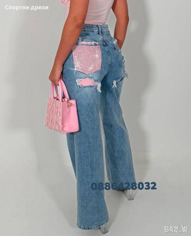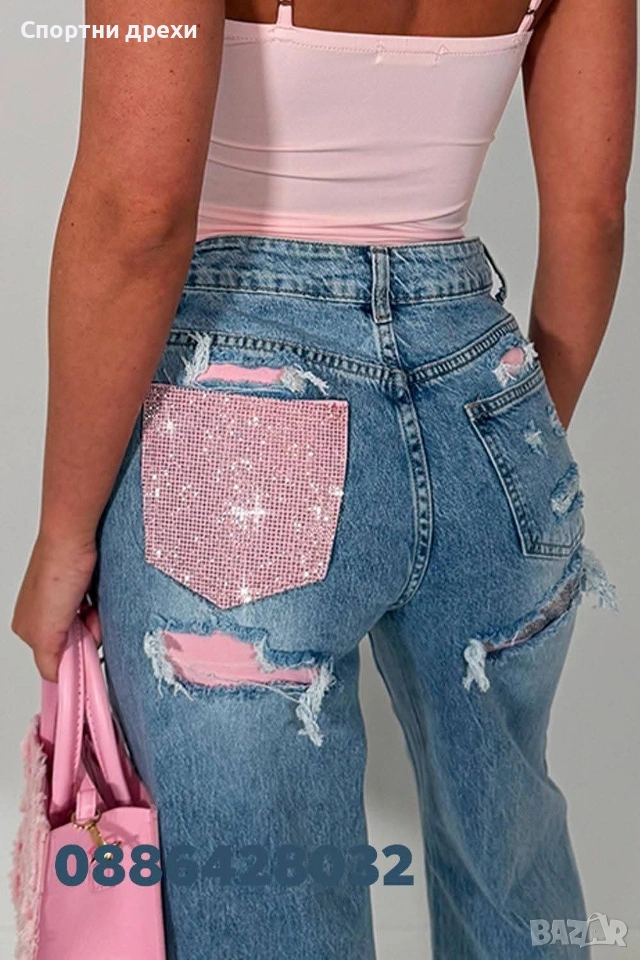 най-сладките Барби дънки,с розово джобче и камъчета,накъсан ефект отзад.Много добре вталяват.Стоят уникално ♥️♥️♥️♥️
