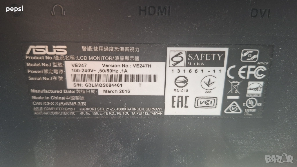 Монитор ASUS също със звук