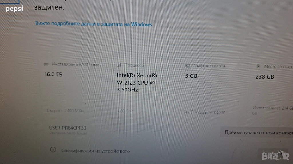 Продавам компютър с монитор напълно изправен