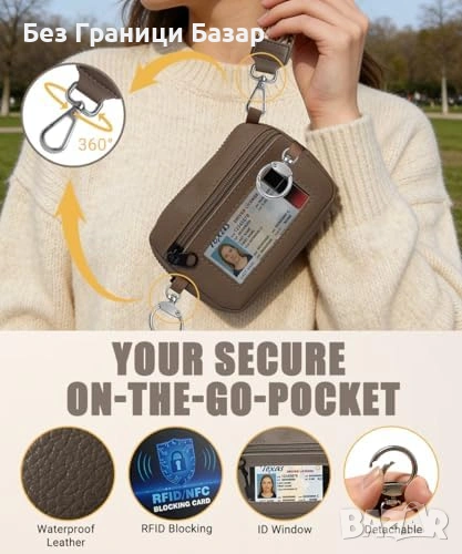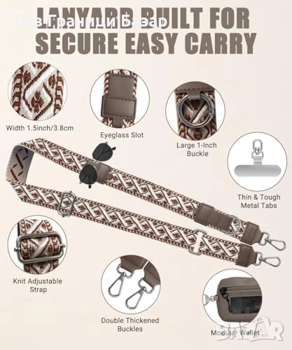 Кросбоди каишка за телефон с вграден RFID портфейл
