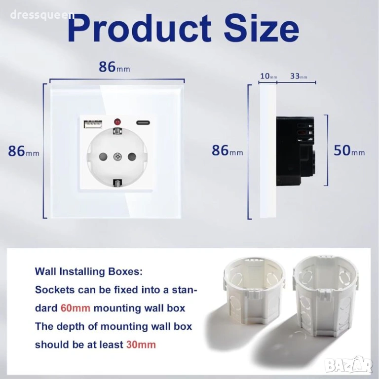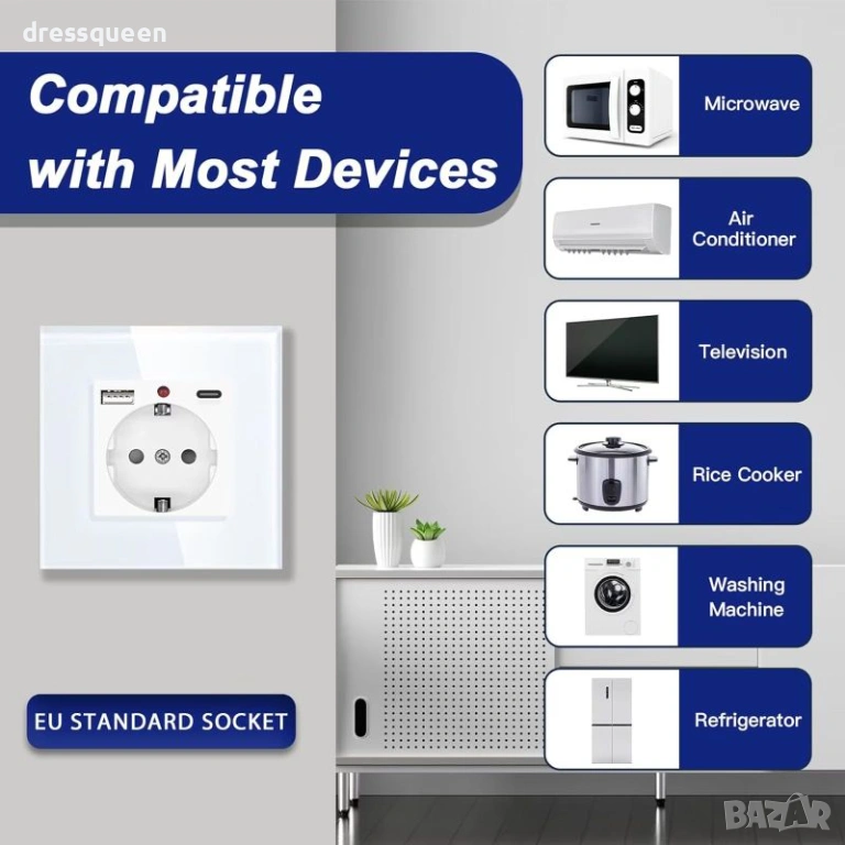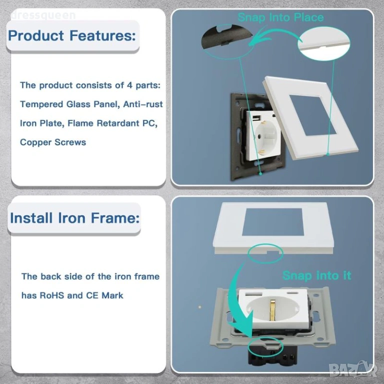 Стъклена Рамка и Двоен USB (A + Type C)Внесете стил и технологичност във Вашия интериор с този висококачествен контакт.