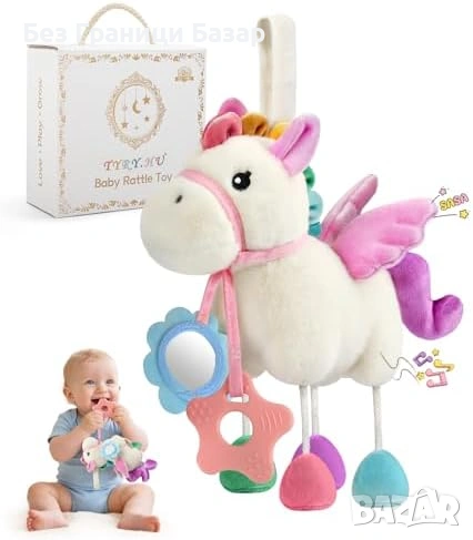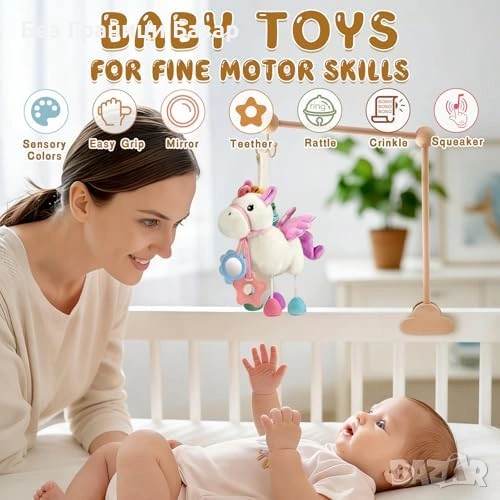 Нова Сензорна бебешка играчка конче за количка с дрънкалка и огледало