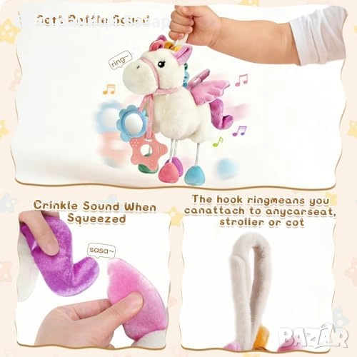 Мека плюшена играчка за бебешка количка, кошара или столче за кола