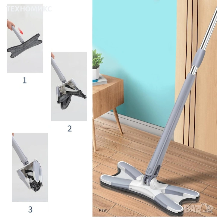 Той има X-образна форма, така че можете да почистите дори най-трудните ъгли на вашия дом и се върти около оста си на 360 градуса, за да покрие всички части на вашия под. Събирайте прах, косми и парцал само с едно устройство! Неговият сгъваем дизайн позволява лесно да го съхранявате където пожелаете, спестявайки място за съхранение във вашия дом.