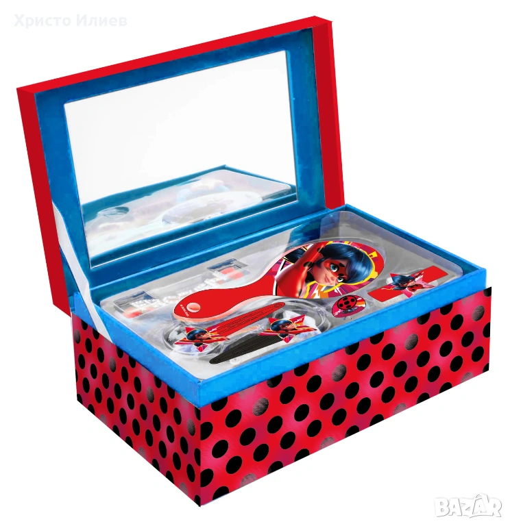 Кутия за бижута с аксесоари MIRACULOUS Калинката и Котарака Детска четка за коса фиби