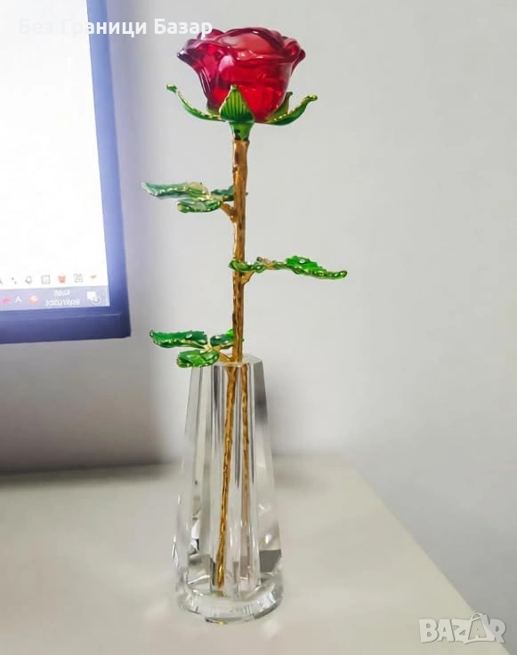 Нова Кристална червена роза във ваза романтичен подарък декор стая дом