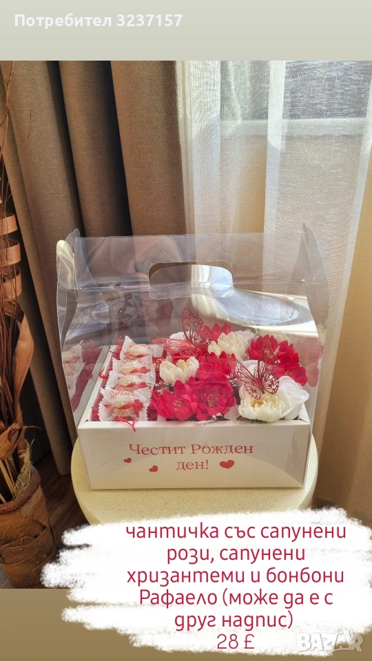 Подаръчна чанта с цветя и бонбони → Обява 53822770