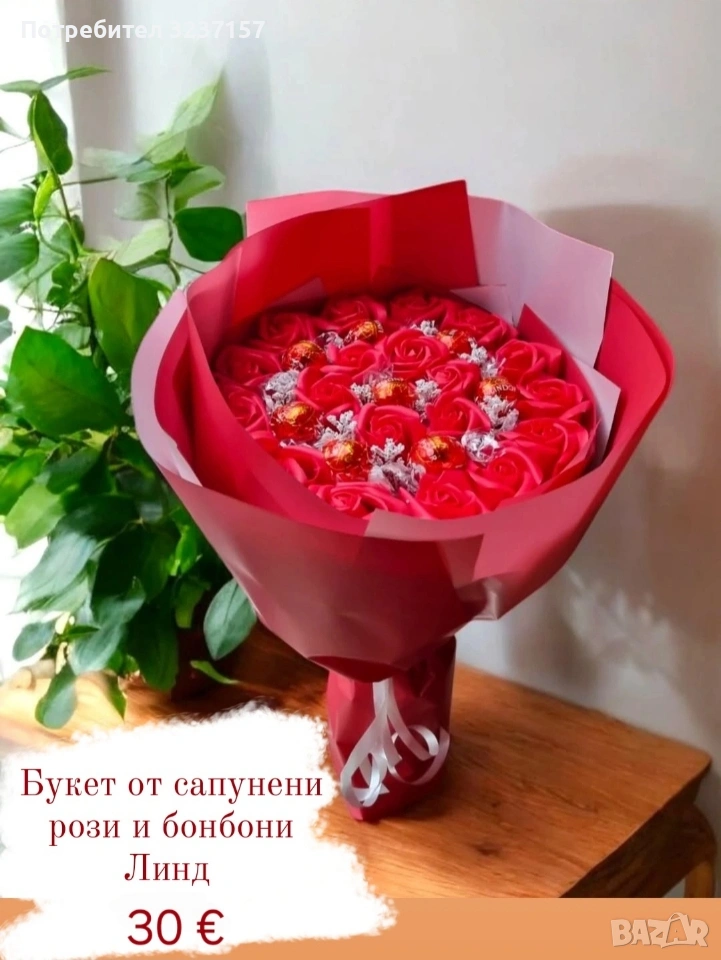 Букети от сапунени цветя и бонбони → Обява 53822854