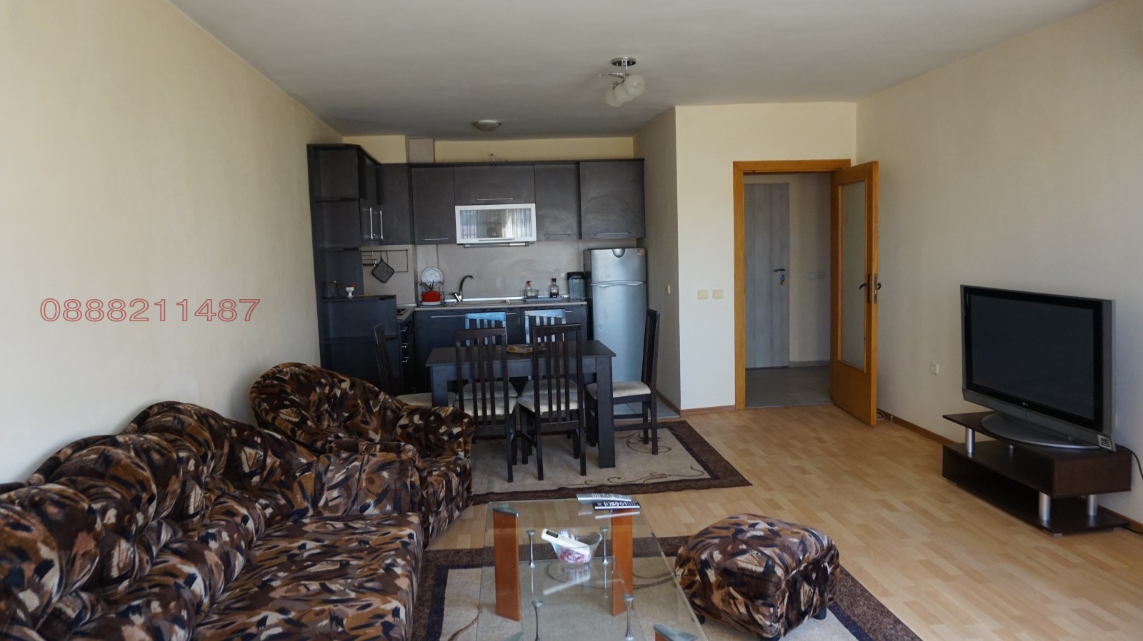 Апартамента е напълно обзаведен с всички необходими електроуреди.