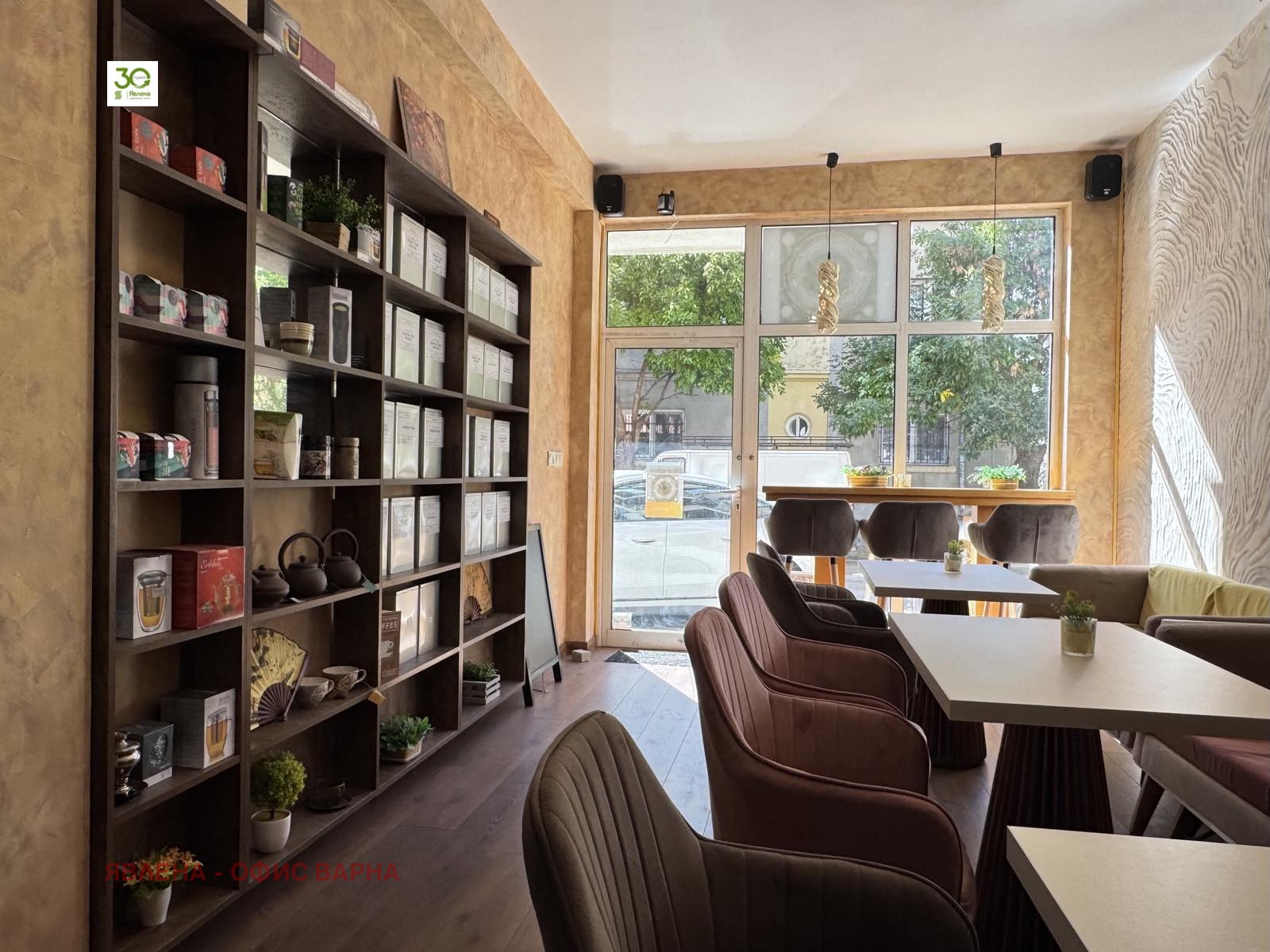 Предлагаме за продажба напълно обзаведено и оборудвано заведение (кафе-сладкарница), разположено на партер в тухлена сграда, в сърцето на град Варна, в близост до централната градска част и ключови пешеходни потоци. Имотът е функционално разпределен на едно ниво тип оупън спейс със стилен дизайнерски интериор и капацитет 30 седящи места. Пространството е светло и приветливо, с двойно осветление, което създава уютна атмосфера за клиенти през целия ден. Заведението се продава изцяло обзаведено и оборудвано с професионална техника за кафе. Отлична възможност както за собствен бизнес, така и за инвестиция с добра възвръщаемост, предвид централната локация и готовия формат на обекта. Подходящо за кафе-сладкарница, бистро, винен бар, шоурум или друг търговски обект.