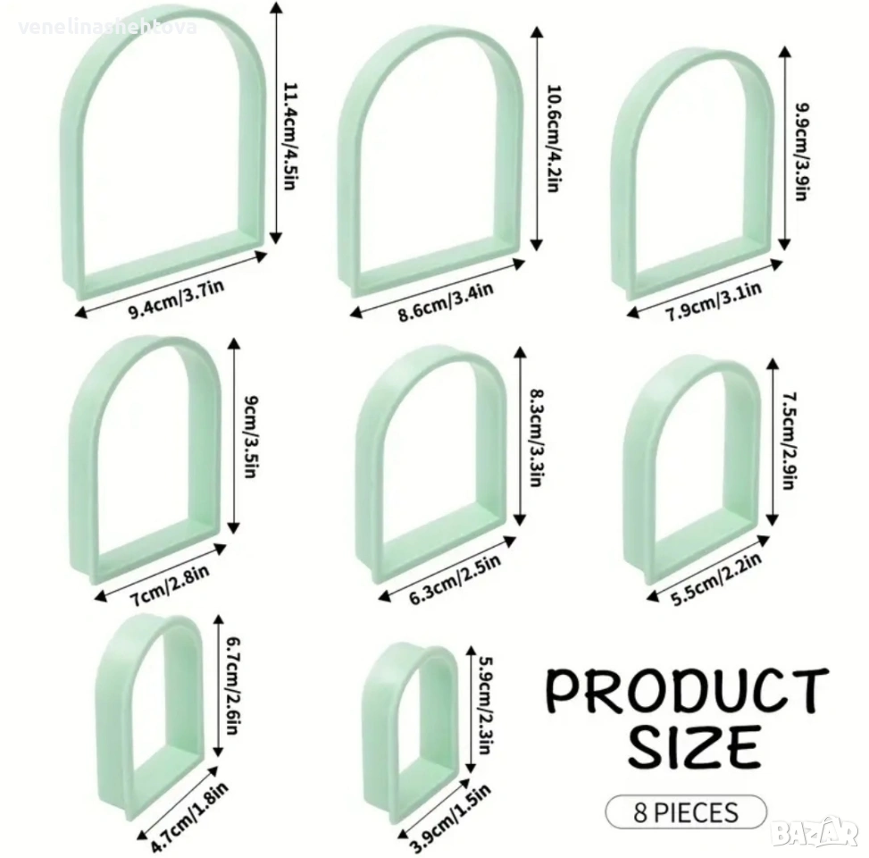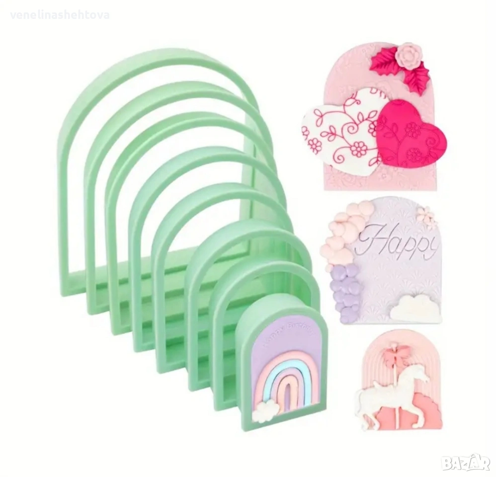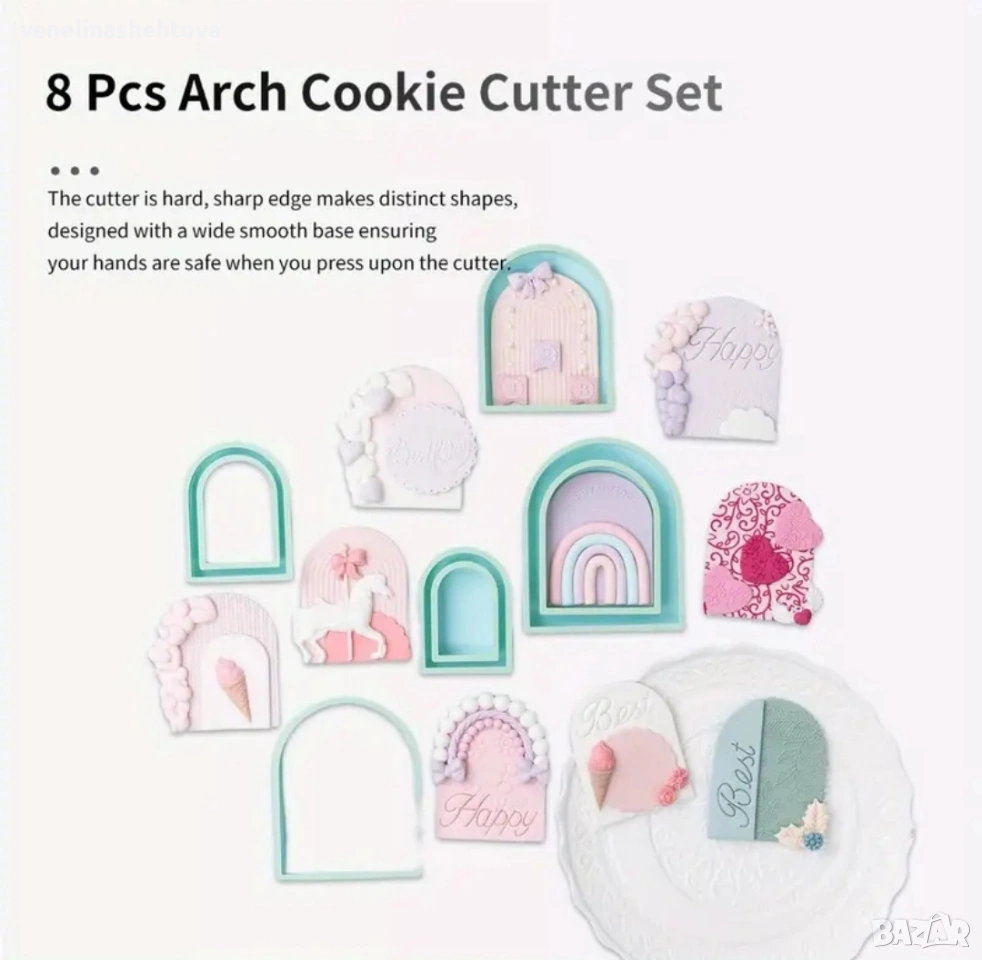 8 броя пластмасови резци резец арка тесто бисквитки фондан декорация торта смола гипс → Обява 53823009