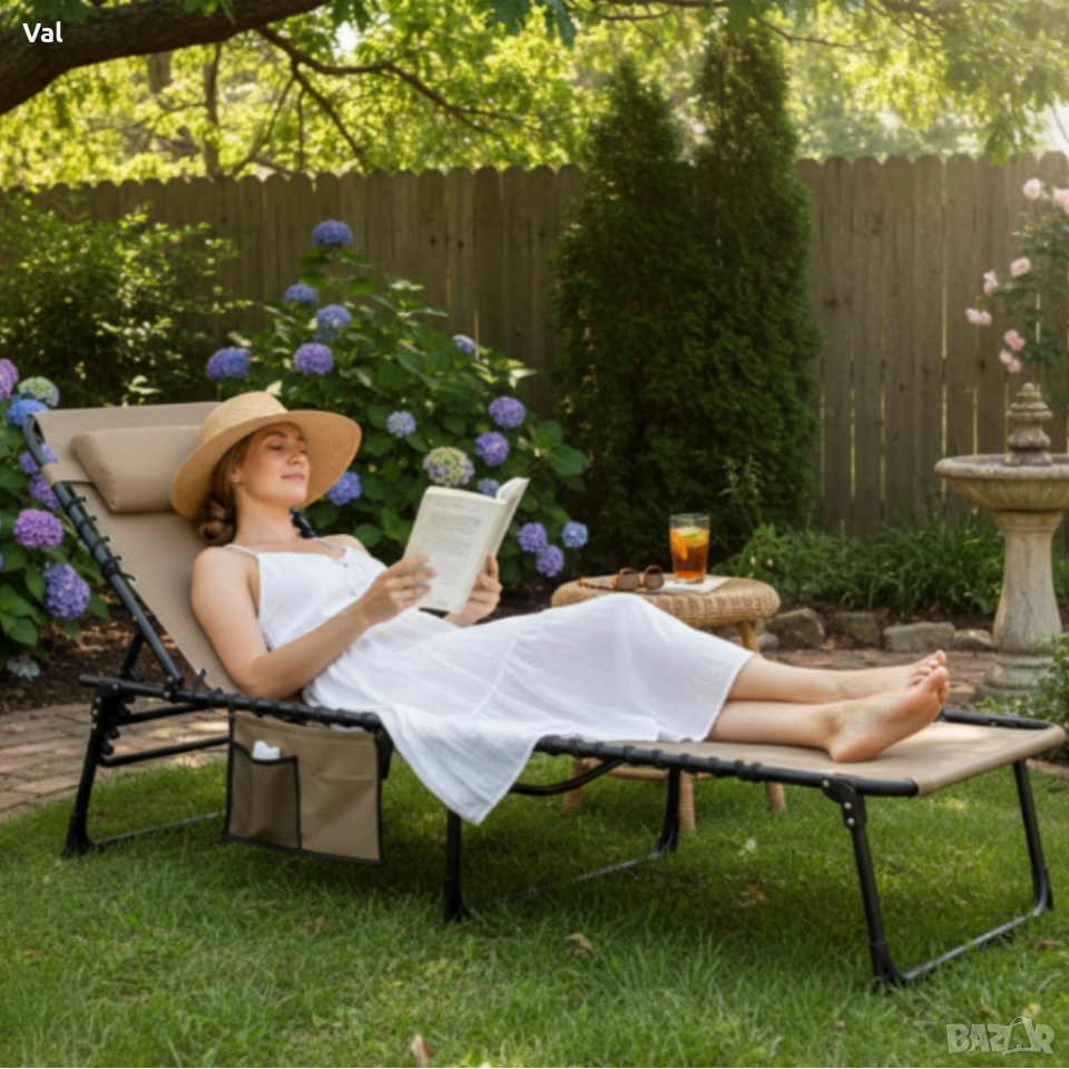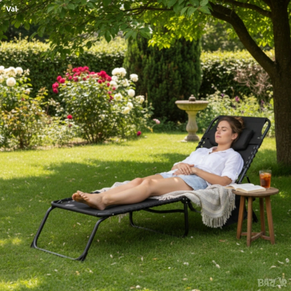 Сгъваем градински шезлонг - легло с джоб - пълен релакс и комфорт