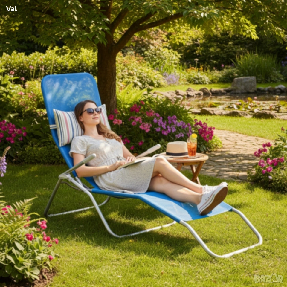 Градински шезлонг с поставка за крака - модерен и удобен за релакс