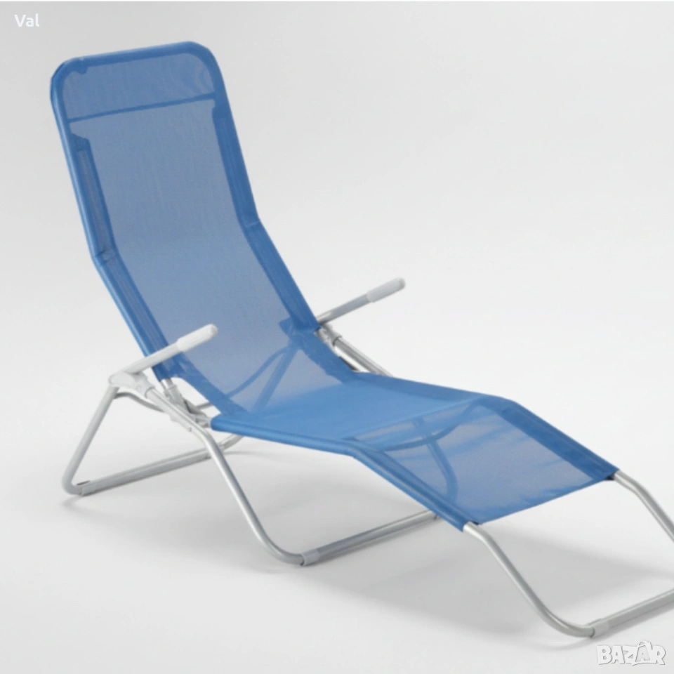 Технически характеристики на Градински шезлонг с поставка за крака - модерен и удобен за релакс Технически детайли дават ясна представа за качество и възможности на шезлонга: Цвят: син Размери: 137 x 58 x 24 / V94 см Рамка: прахово боядисана стомана Диаметър на тръбата: 24 мм Материал на седалката: 1X1 текстил Максимално натоварване: 130 кг Функция накланяне: не