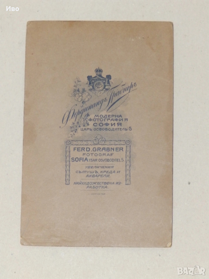 Стара фотография на картон - фотограф Фердинандъ Грабнеръ → Обява 53823268